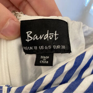 BARDOT Paloma Striped Midi Dress Off the Shoulder Size Small