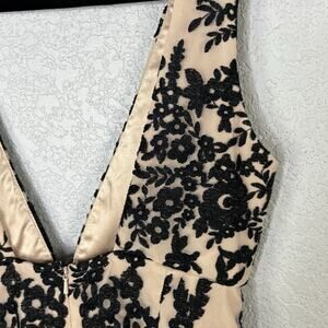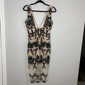BARDOT Size 4 XS Dress Sheer Mesh Floral Embroidered pencil wiggle Beige Black