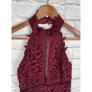 BARDOT Women's Wine Lace Halter Neck Bodycon Gemma Midi Dress US 6