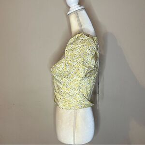 🌻BARDOT Yellow Floral Puff Sleeve Crop Top