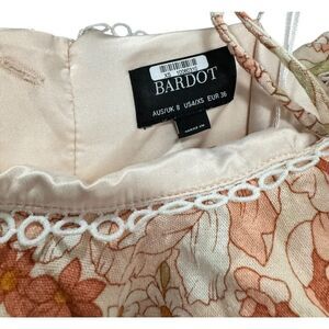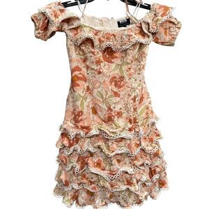 Caitlyn Peach Floral Off-the-Shoulder Ruffle Tiered Mini Dress by BARDOT is the perfect addition to your wardrobe! This dress is new with tags and in excellent condition.
