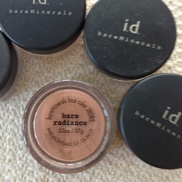 Hope this helps!! The bottom sample is Bare Radiance and the upper sample is the Peach Puff Eyeshadow - included for contrast. Looks better on skin than a paper towel!!