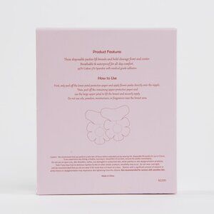 Peel off the protective paper and apply pasties directly onto the nipple. Use the disposable pasties to lift your breasts and securely apply. Do not use oils, powders, moisturizers, or fragrances near the breast area!