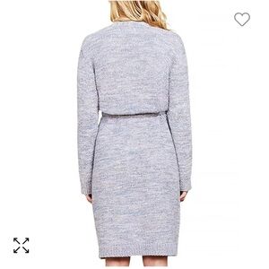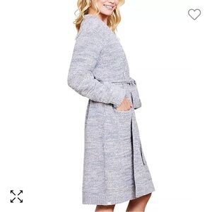 Tag: cozy, warm, fuzzy, soft, comfort, cute, pockets, tie, knit, midi, spring, summer, fall, winter, lounge wear, v-neck, gray, grey, pink, cozychic