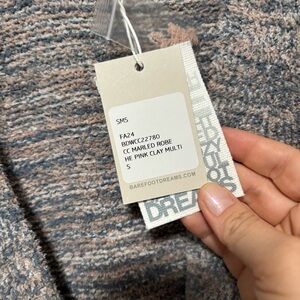 BAREFOOT DREAMS Cozy Chic Heather Pink Clay Gray Marled Tie Midi Robe NWT