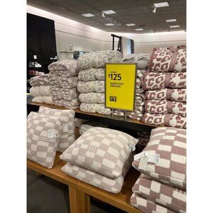 BAREFOOT DREAMS CozyChic Checks & Stripes Accent Pillow in Stone/ Cream NWT