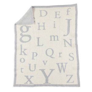 BAREFOOT DREAMS Cozychic ABC Baby Blanket Super Soft 30x40 Gray White NWT