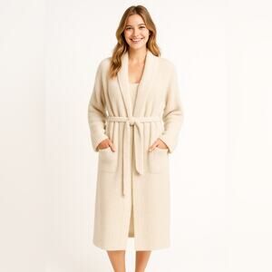BAREFOOT DREAMS Cream Chunky Knit Cardigan Robe Oversized Long Tie Waist Large