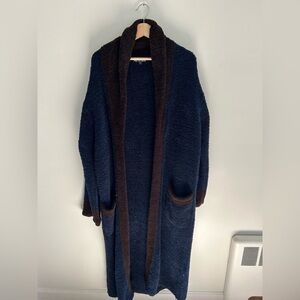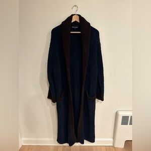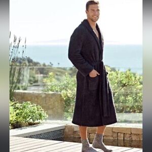 BAREFOOT DREAMS MENs Navy/brown lounge bath robe missing belt M/L