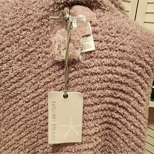 BAREFOOT DREAMS NEW FUZZY ROSE BALLET PINK POCKETS WITH FRINGE ONE SIZE WRAP