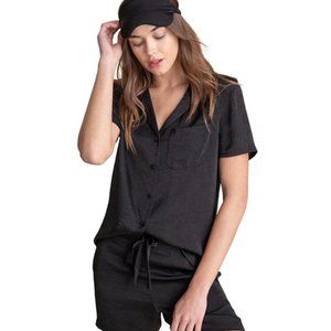 Includes: Eye Mask, Short Sleeve Button Up Shirt, & Tie Front Lounge Shorts