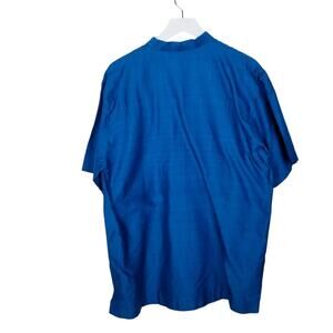 BAREFOOT ORGINAL Handwoven Handmade Hank-Dyed Pure Cotton Shirt. Mandarin collar and loop button-down front with brown buttons. 100% cotton.