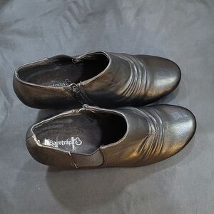 BARESTRAPS CERISSA WOMEN'S LOW BLOCK HEEL BOOTIES SIZE 71/2W COLOR BLACK MADE WITH ALL MAN-MADE MATERIALS LINING BALANCE UPPER MAN-MADE MATERIALS SIDE ZIPPER CLOSURE ROUND TOE SLIP-ON STYLE HEEL HEIGHT MEASUREMENTS APPROX 2.15"INCHES THIS ITEMS IS PRE-OWNED EXCELLENT CONDITION WITH ONLY LIGHT SIGNS OF WEAR IF ANY CHECK THE PICTURES (FYI THIS ITEMS HAVE TINY DAMAGE IN ONE OF THE SHOE MADE WITH ALL