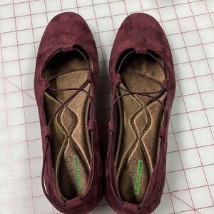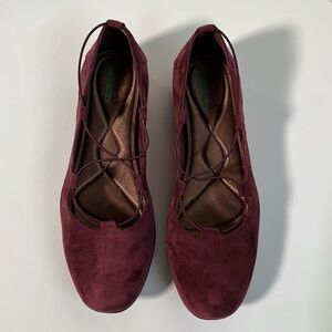 BARETRAPS "Jackeline" Faux Suede Elastic Crisscross Fall Office Wine Flats 10