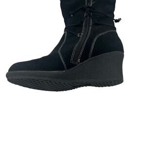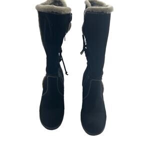 BARETRAPS Mid Calf Black Suede Wedge Fur Lined Boot Women's 8.5