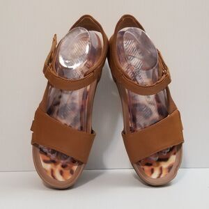 BARETRAPS Womens Brown Abrielle Open Toe Wedge Heeled Sandals Size 9.5 M EUC