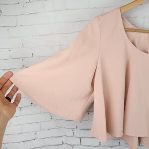 BAR III PEACH 1/2 SLEEVE SCOOP NECK FLOWY CROPPED TOP SIZE SMALL