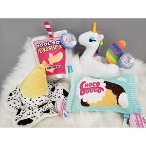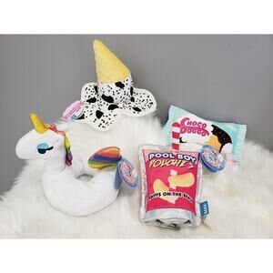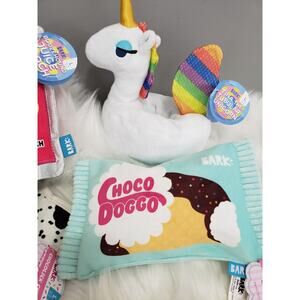 BARK BOX LOT 4 DOG TOY GIRL LARGE ICE CREAM CONE UNICORN CHOCO CHOCOLICK BEACH