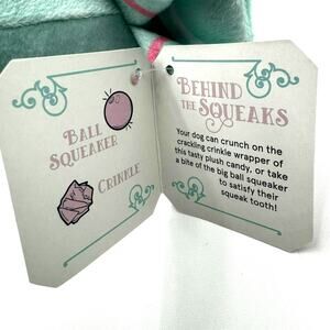 This Barkbox toy is the perfect addition to your dog's toy collection. With its soft and fuzzy exterior, it will become your dog's new favorite cuddle buddy. The toy is equipped with multiple features such as a squeaker, crinkle sound, and ball squeak, making it perfect for fetch and playtime. The sturdy material ensures that it can withstand even the toughest play sessions. The vintage design and new with tag feature make it a collectible item. Suitable for dogs of all sizes, this stuffed toy will provide endless entertainment for your furry friend.