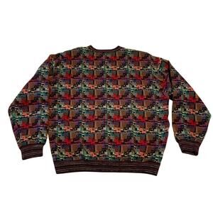 BARNES STORM Sweater Men Large Wool Blend Woven Wave Geometric Art Pattern Vntg