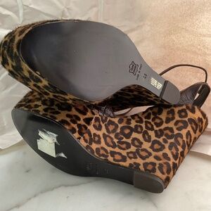 BARNEY'S New York Co-op Alligator Embossed Chocolate Leather Peep Toe Upper with Hair On Leopard Print Platform Heels 41 NWT NEVER WORN