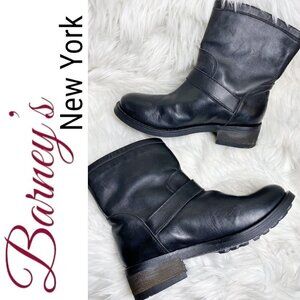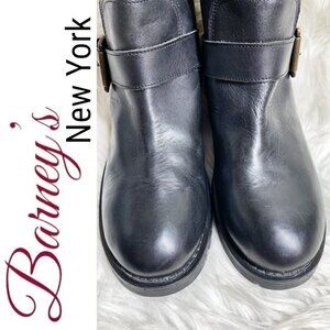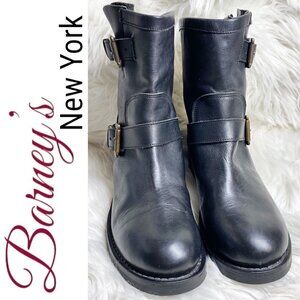 BARNEY'S NEW YORK Black Leather Moto Buckle Ankle Boots, Size 37