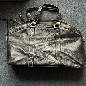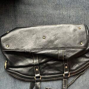 BARNEYS NEW YORK genuine leather black satchel with gold hardware