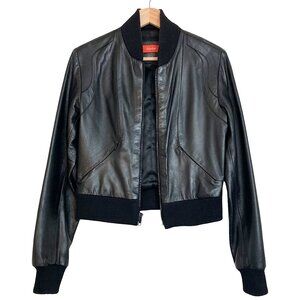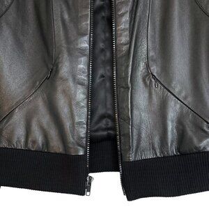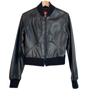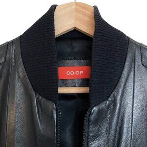 BARNEYS NY CO-OP Black Lamb Skin Leather Baseball Bomber Jacket Runs Small
