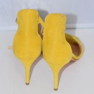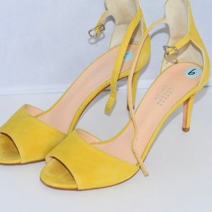 BARNEYS New York CO-OP Yellow Suede Ankle Strap Heel Sandals Italian Made Size 6
