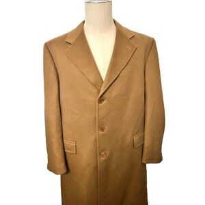 Beautiful coat in excellent condition! From Barneys New York, made of 100% Cashmere and lined with Rayon. Single Breasted button closure. Has pockets at the waist (still tacked shut!). Color is a camel brown. Men's size 52R