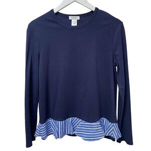 BARNEYS New York Womens Top Small Layered Look Ruffle Hem Ponte Knit Tee Blue