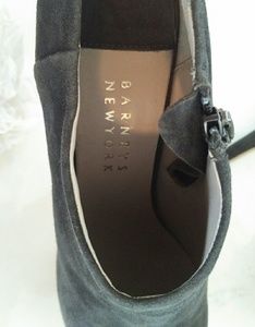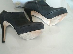 All leather grey suede shoe booties w zipper. 5 1/4" heel and 1 1/4" platform. Wore 2 times , so comfortable,look great on.. stored in original box gorgeous...EUC