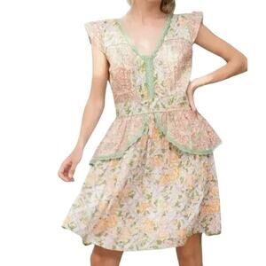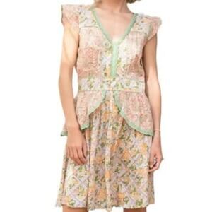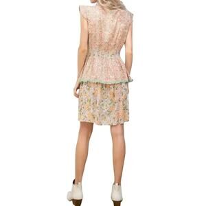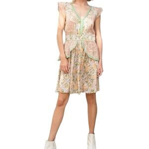 BAROK PARIS Metallic Ruffle Dress in Peach, Size L, New with Tag MSRP $165 SOO