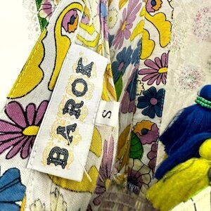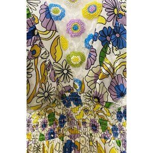 BAROK Paris Floral Ruffle Dress in White Size Small