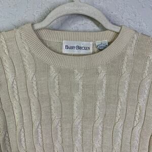 BARRY BRICKIN Sweater Vintage Silk Cable Knit Crew Neck Pullover Drop Shoulder