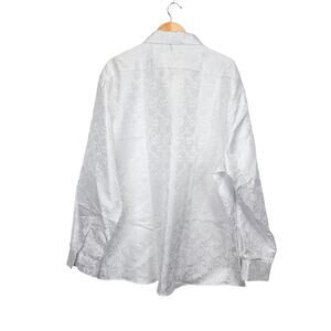 BARRY WANG Silk Blend White Paisley Floral Jacquard Button Up Dress Shirt 3XL