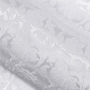 Barry Wang silk-blend dress shirt in elegant white jacquard with tonal paisley floral pattern. Sophisticated sheen fabric and classic button-up style perfect for formal events, weddings, or elevated evening wear. Refined yet bold—ideal for luxury, statement, or modern formal aesthetics with a sleek, confident edge.