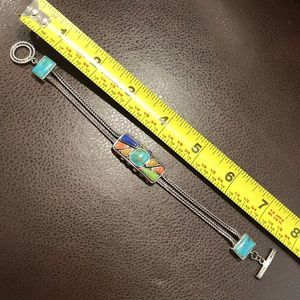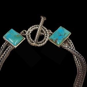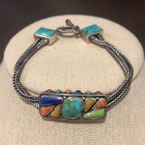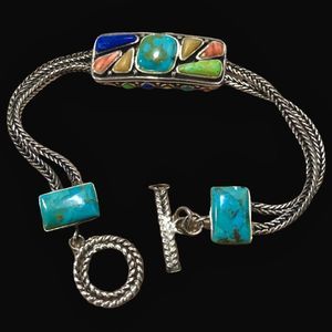 BARSE Sterling Silver Turquoise Coral Lapis Cabochon Thai Weave Toggle Bracelet