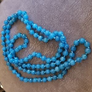 BARSE Teal Dyed Jade Knotted Beaded Long Necklace