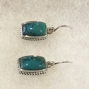 BARSE Turquoise Sterling Silver Rope Braid Framed Drop Earrings NWT