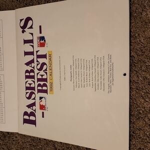 BASEBALL’S BEST 1992 PHOTO WALL CALENDAR MLB
