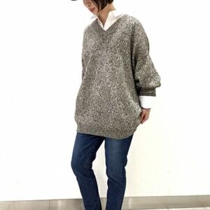 Size: M/L The fit on this slightly less oversized as the later Beasley sweaters that were knit with mixed yarns (cotton, polyamide and yak). I got this in M/L as I wanted a little bit of room, but not super oversized. This has a more polished look because of the beautiful color and exquisite cotton knit.