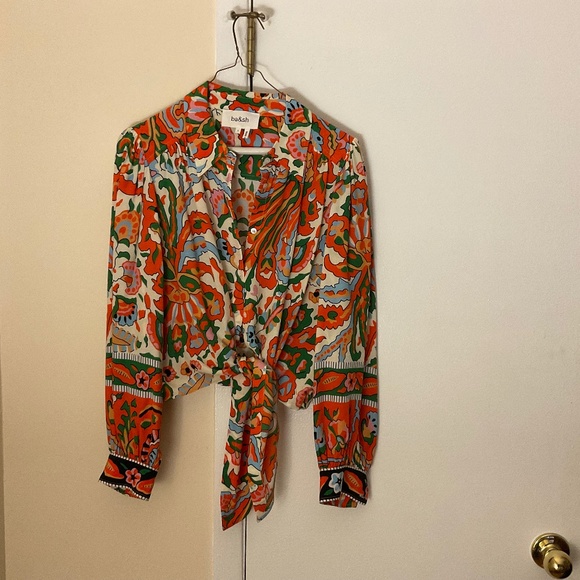BA&SH blouse. Size XS, 100% Viscose. Main colors, Orange, White and Green. Never Worn