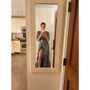 BA&SH Black Gold Metallic V-Neckline Nixon Short Sleeve Maxi Dress Size US 6