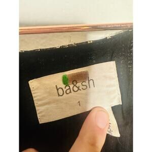 BA&SH Black and Gold Metallic Nixon Maxi Dress in size US 6 is a glamorous piece with a perfect balance of elegance and shine. Crafted from a lightweight, flowing fabric, this maxi dress features a black base adorned with subtle gold metallic threads, creating a shimmering effect that catches the light beautifully. The dress has a flattering V-neckline and short sleeves, lending it a classic yet modern look. With a relaxed, draped silhouette that falls gracefully to the floor, it’s designed for comfort and style. Perfect for evening events, holiday gatherings, or special occasions