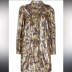Capi lurex-embellished dress from BA&SH featuring lurex detailing, paisley print, round neck, long sleeves, two front patch pockets and gold-tone.