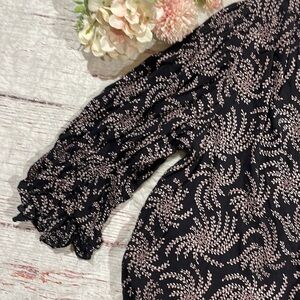 Ba&sh chik style floral pinwheel graphic red and black colored 3/4 sleeve lady blouse. This blouse is a size 1 which is equal to a size 6. This top is in great used condition