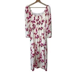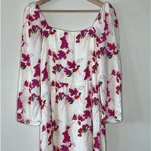BA&SH ELONOR FLORAL PRINT MIDI DRESS SIZE L. square  neck, three-quarter-length sleeves, and a smocked back for easy wear. side zipper closure,  viscose. Pre-owned great condition. Measurements: pit to pit 18", length 48".