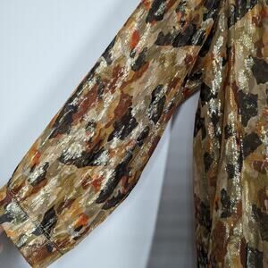 BA&SH Gaby Metallic Blouse Silk Ochre Gold Abstract Print 3/4 Sleeve Size XS