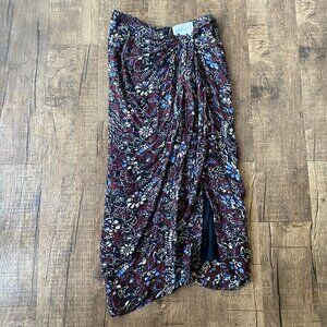 BA&SH Galia midi skirt draped front in Floral Print, Size SML